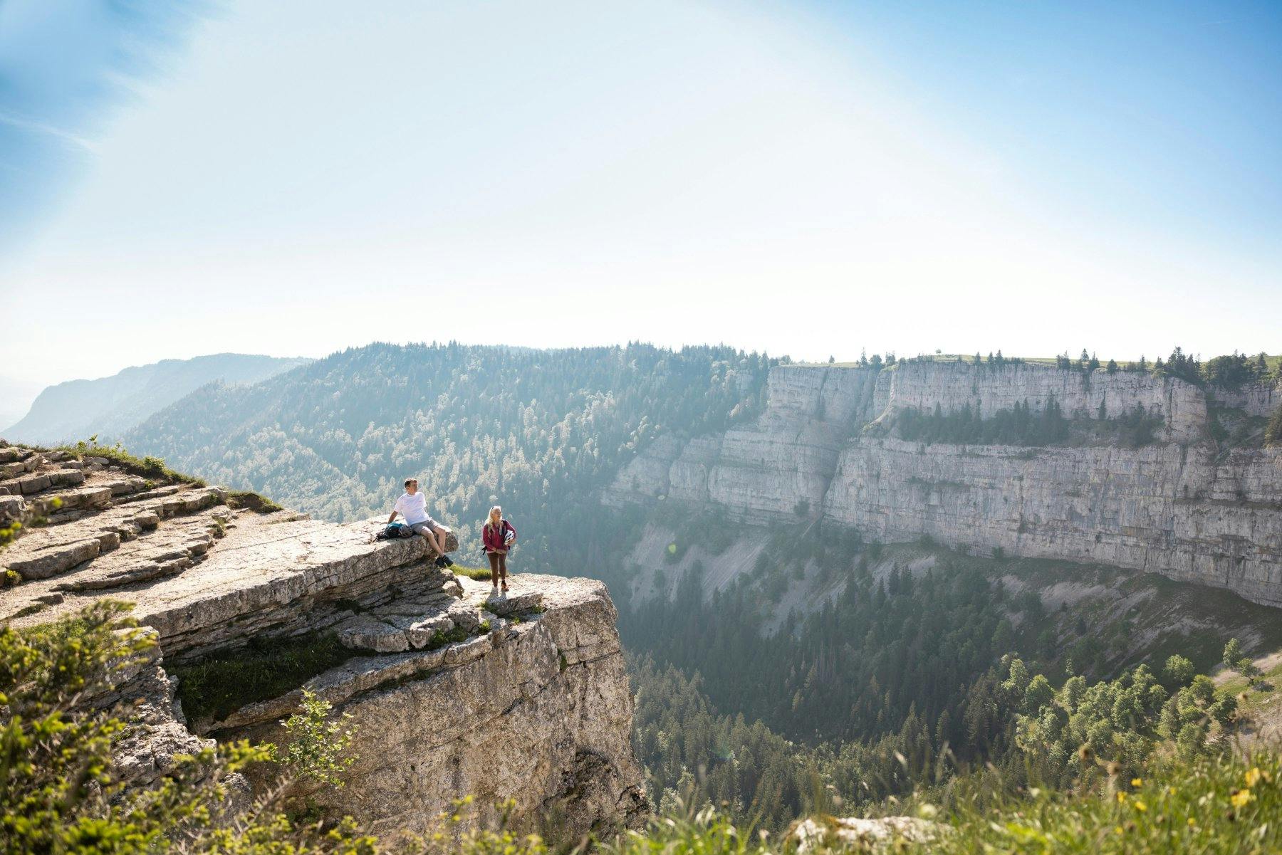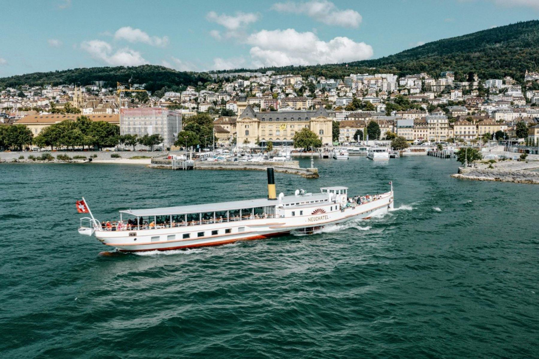 Auf der bezaubernden Reise mit dem R21, der in nur 42 Minuten Neuenburg mit Buttes verbindet, erlebt man malerische Landschaften – vom Blau des Neuenburgersees hinauf ins Grün des Juragebirges.