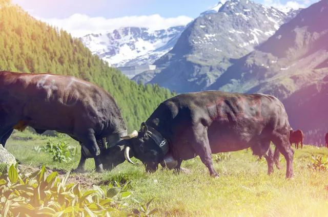 Wer die Eringerkühe kämpfen sehen möchte, besucht entweder einen traditionellen Kuhkampf oder wandert in vier Stunden zur Alp Mandelon.