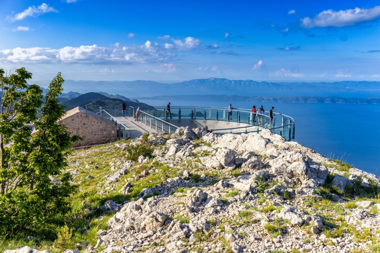 Das Kalkmassiv des Biokovo-Gebirges ragt 1700 Meter über der dalmatischen Adria empor. Was für ein Blick vom Skywalk! Vor Ihnen erstreckt sich das Meer bis zum Horizont. 1228 Meter weiter unten liegt Ihnen die Inselwelt zu Füssen. Ein «mittendrin»-Ausflug mit atemberaubender Sicht.