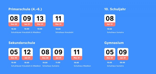 Für interessierte Eltern finden Informationsveranstaltungen in allen drei Schulhäusern der Freien Katholischen Schulen Zürich statt. Anmeldung und weitere Informationen finden Sie unter infotage.fksz.ch