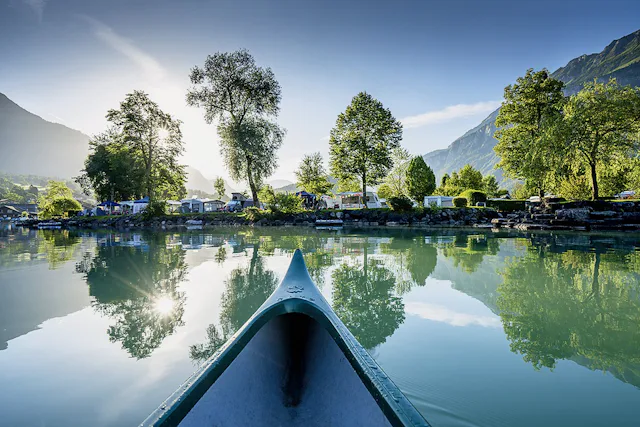 Das Familiencamping Aaregg schmiegt sich an den Brienzersee, was besonders Wasserratten freuen dürfte. Mit einem Kinderkino und einem Piratenland bietet das Camping gerade auch für die Kleinen viel Abwechslung. Übernachtet wird ganz luxuriös auch in Bungalows mit Seeblick oder einem Pod House. Für Marcel Zysset, der den Platz mit seiner Familie betreibt, ist der Schnitzlerweg, der von zahlreichen Holzskulpturen gesäumt wird, eines der Highlights der Region. Zudem gebe es viele wunderschöne Plätze für Stand-up-Paddler.