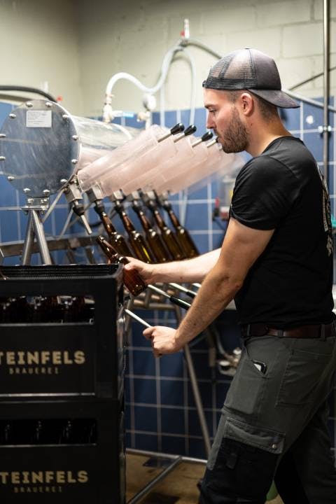 Sämtliche Rohstoffe prüft Stapel höchstpersönlich auf optimale Qualität, diese Arbeit kann ihm keine Maschine abnehmen. Auch das Reinigen, Füllen und Etikettieren der Flaschen wird bei der Brauerei Steinfels noch von Hand erledigt. Ein weiterer wichtiger Faktor neben erstklassigen Zutaten und der Expertise des Braumeisters ist natürlich das Wasser. “Das von der Stadt bereits aufbereitete Züriwasser eignet sich ganz wunderbar zum Brauen”, sagt der Braumeister.