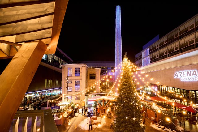Ein Highlight, das schon von Weitem ins Auge sticht: Der 60 Meter hohe Kamin, das Wahrzeichen von Sihlcity, leuchtet in einem funkelnden Lichtermeer aus 52’000 LEDs. Prachtvoll geschmückte Weihnachtsbäume mit glitzernden Diamanten und schillernde Kristalle vollenden die magische Atmosphäre, die zum Verweilen einlädt.